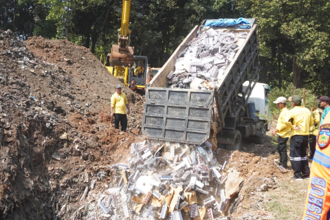 Sekda Edy Sujatmiko secara simbolik memimpin pemusnahan BBMN tersebut di halaman Pendapa Kartini dilanjutkan pemberangkatan truk pengangkut sisa pemusnahan ke TPA Bandengan guna dilakukan pemrosesan akhir dengan cara ditimbun.