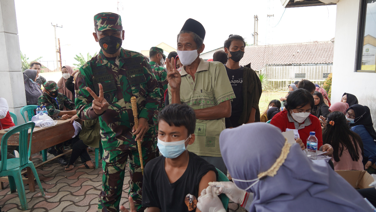 “khusus Kabupaten Bogor pelaksanaan vaksinasi kolaborasi ini telah mencapai 3.465.000 warga yang tervaksin, yang diantaranya 2.100.000 orang dosis pertama, dan 1.365.000 dosis kedua. Dengan pencapaian itu maka vaksinasi kolaborasi ini akan terus ditingkatkan agar dapat mencapai target minimal 70 sampai 75%. Dan semoga hari ini bisa mencapai target yang diharapkan, tentunya agar status level terkait covid-19 di wilayah Kabupaten yang saat ini level 3 bisa berubah menjadi level 2.” Ujar Danrem.