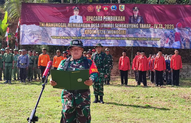 WONOGIRI – Program TNI Manunggal Membangun Desa (TMMD) Sengkuyung Tahap – IV tahun 2025 Kodim 0728/Wonogiri secara resmi dibuka bertempat di Lapangan Desa Ngambarsari Kec. Karangtangah Kab. Wonogiri, Rabu, (8/10/2025).