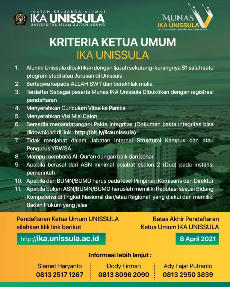 SEMARANG, WARTAJAVAINDO.COM – Ahad, 11 April 2021 IKA UNISSULA punya gawe, yaitu Musyawarah Nasional (Munas)…