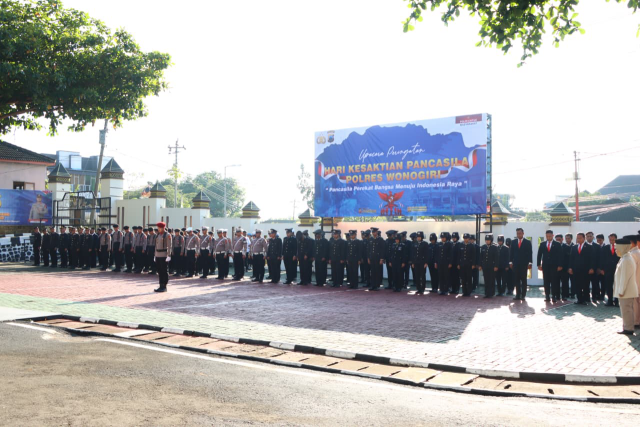 Dalam kegiatan tersebut, Kapolres Wonogiri AKBP Wahyu Sulistyo, S.H., S.I.K., M.P.M. bertindak sebagai Inspektur Upacara. Upacara diawali dengan penghormatan kepada arwah pahlawan, dilanjutkan dengan pembacaan Pancasila, serta pembacaan ikrar kesetiaan kepada ideologi bangsa.