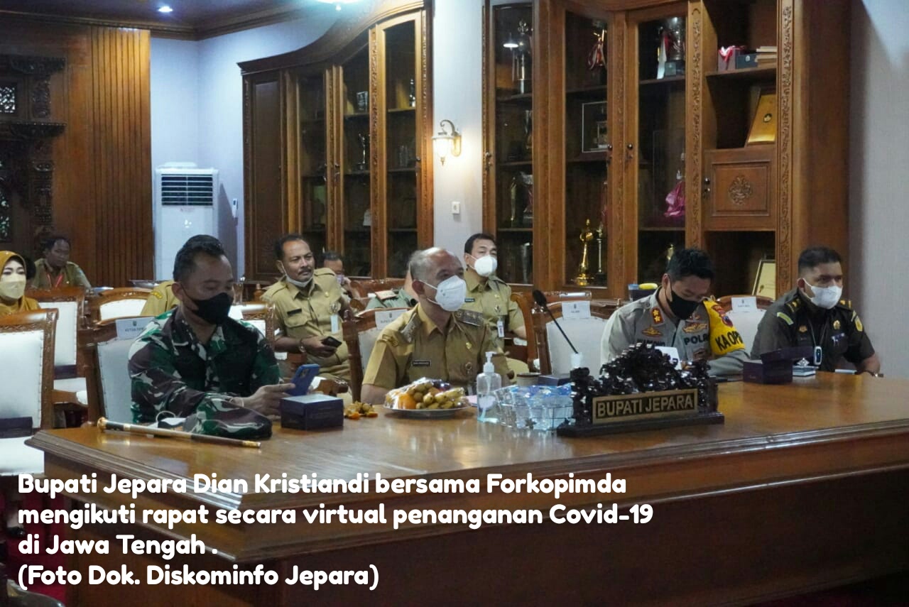 Bupati Jepara Dian Kristiandi ikuti Rapat Koordinasi Percepatan Penanganan Pandemi Covid-19 Provinsi Jawa Tengah di ruang vidcon Bupati Jepara, Senin (15/11/2021).