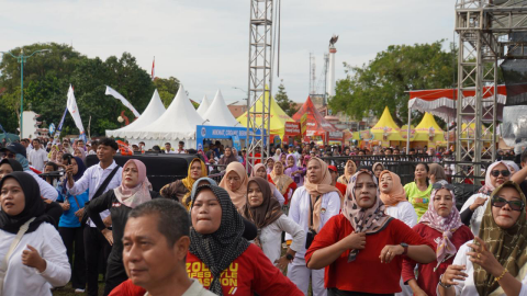 JEPARA – Alun-alun 1 Jepara berubah menjadi lautan manusia! Ribuan warga Jepara dan sekitarnya tumpah ruah, siap menggebrak hari dengan keseruan Festival ANTV Rame, Sabtu (25/10/2025). Suasana semarak dan meriah, diisi dengan berbagai kegiatan hiburan dan senam massal yang bikin kamu GO AHEAD!