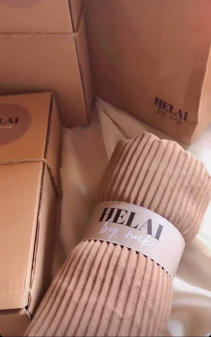 “Butuh waktu satu bulan untuk memikirkan nama itu. Muncul ide kata ‘helai’ yang menurut aku satu helai kain yang menutupi kepala mampu membantu para wanita belajar menutpi auratnya. Lalu kata ‘nuk’ diambil dari singkatan namaku sendiri, Nuri Uswatun Hasanah (nuk) dan jadilah nama brand Helaibynuk,” jelasnya.