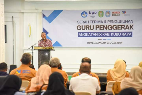 KUBU RAYA – WARTA JAVAINDO, Penjabat (Pj) Bupati Kubu Raya Syarif Kamaruzaman mengukuhkan 63 Guru Penggerak Angkatan IX se-Kabupaten Kubu Raya, Jumat (21/6/2024), di Aula Hotel Dangau, Kubu Raya.