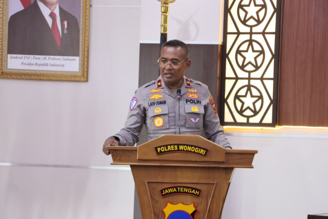 WONOGIRI – Wakapolda Jawa Tengah Brigjen Pol Dr. Latif Usman, S.I.K., M.Hum memimpin kegiatan Gelar Operasional (GO) dan Analisa Evaluasi (Anev) Kamtibmas di Polres Wonogiri, Selasa (7/10/2025). Kegiatan digelar di Aula Sanika Satyawada Polres Wonogiri.