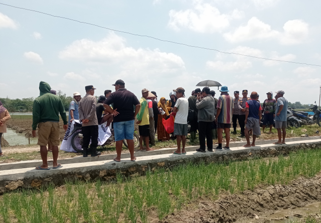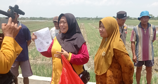 “Sawah ini saya beli dengan hasil keringat sendiri, ada zegel jual belinya dan ada tanda tangan Kepala Desa serta saksi”, tegas istri Sutikno.